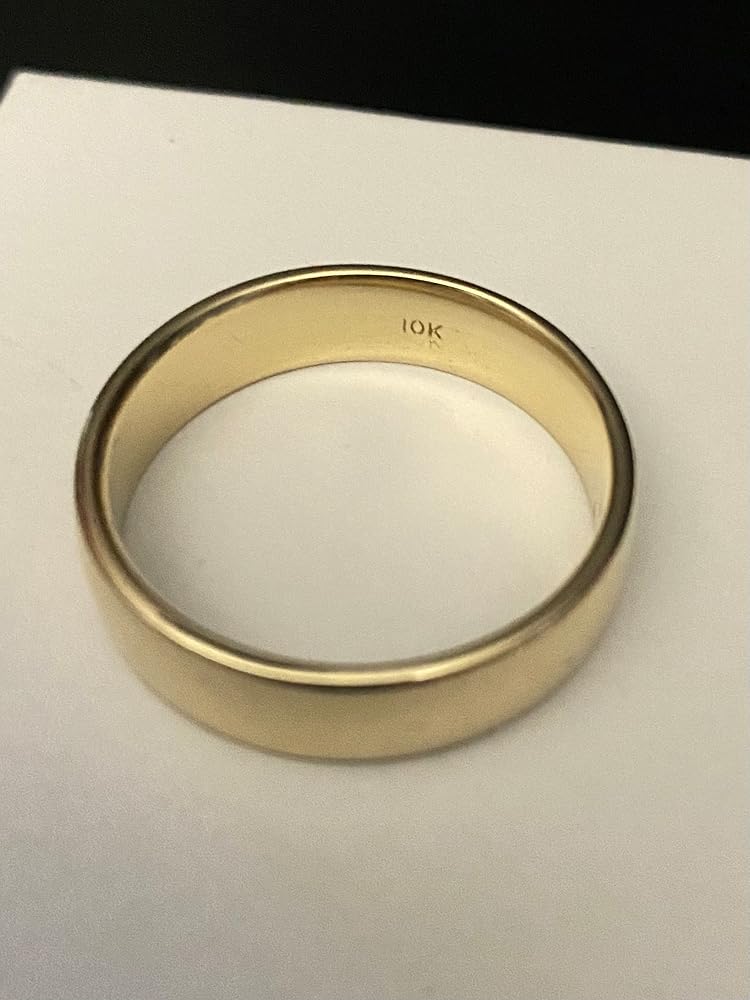 This is a beautiful ring at a great price! I didn’t know what to expect since there were no reviews on this, but I decided to give it a try since the price was reasonable, and my fiancé wants a classic gold band. I almost purchased a ring from a local jewelry store since they were having a 50% off sale. They only had one type of 6mm 10k classic gold band. I wasn’t very happy with that ring because it was so thin that it was almost sharp on the edges, and I was going to have to pay an extra $70 to get it sized. I was going to get it anyway since that’s all they had, but I decided to check Amazon, and I’m glad I did! This ring is exactly what I was looking for, and for a much more reasonable price that at the local store, even with their 50% off sale. With purchasing this ring, I was glad to be able to choose the size I needed without having to get it sized. I’m very happy with the thickness, weight, and feel of this ring. It’s not super thin like the one I saw in the store, it has nice round edges. The ring is polished and smooth, it should be very comfortable for my fiancé once we say, “I do!”
