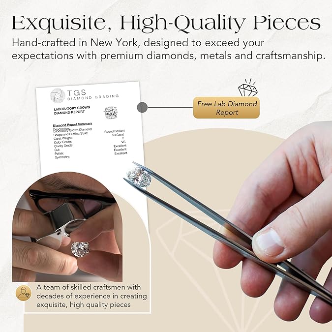 RESPONSIBLE LUXURY: Experience the beauty of lab created diamonds—indistinguishable from natural diamonds in their physical, chemical, and optical properties. Ethically grown and conflict-free, our diamonds allow you to embrace sustainable luxury without compromise.